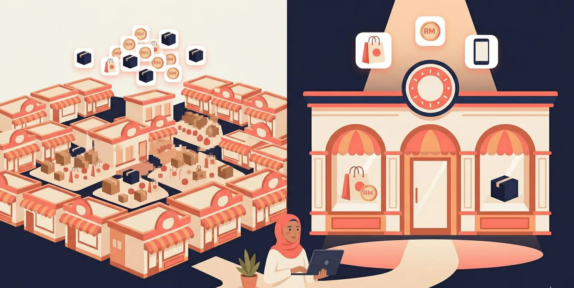 Ramai peniaga berjaya di Malaysia guna apa yang dipanggil "multichannel strategy": jual di marketplace untuk exposure, tapi arahkan repeat customer ke website sendiri. Cara ni bagi anda best of both worlds.